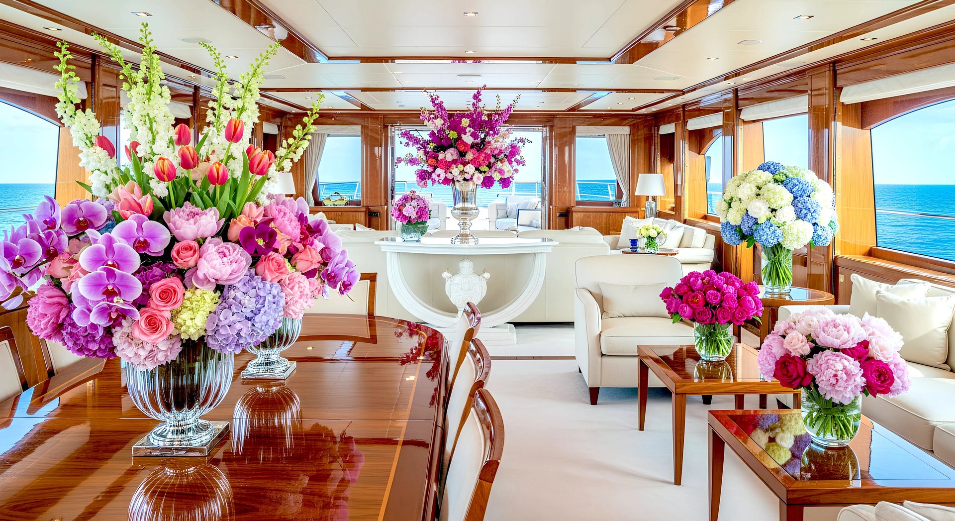 With years of experience working alongside top yacht companies, we provide discreet onboard setup, seamless coordination, and flowers that stay fresh even under sun and salt.